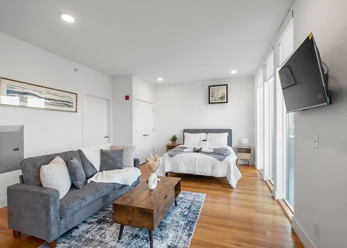 Situado a unos 2 km del Mercado Reading Terminal, el apartamento también está a unos 3 km del Memorial Nacional Benjamin Franklin. Los huéspedes encontrarán el Liberty Lands al lado de este apartamento de 56 m². El Designer Studio Loft Balcony Pool Gym está a poco más de 10 minutos en coche del Museo Marítimo Independence Seaport.